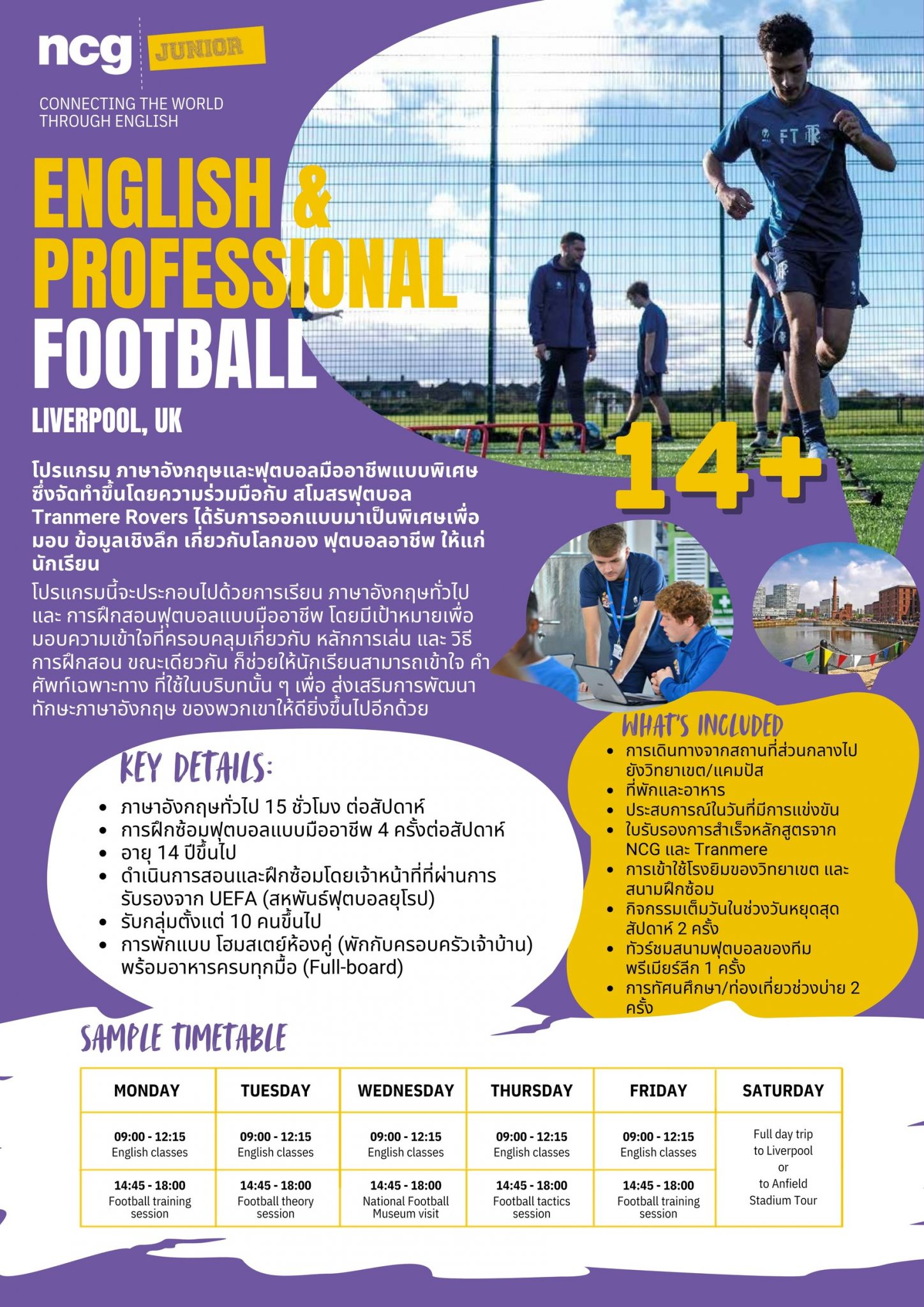 เรียนภาษาพร้อมฝึกฟุตบอลแบบมืออาชีพกับ สโมสรฟุตบอล Tranmere Rovers