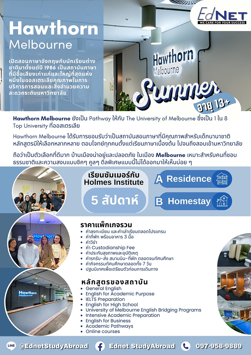 👉 สมัคร Summer Hawthorn Melbourne Line : @ednet โทร 0894490272